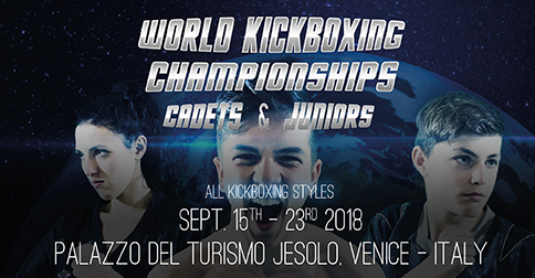 La Fikbms e la Euro Kick Boxing di Chioggia, rappresentata da Nicola Traina e Barbara Falsoni, organizzano dal 15 al 23 settembre, a Jesolo, i campionati del mondo Cadetti e Juniores (di età tra i 10 e i 18 anni) di kickboxing.